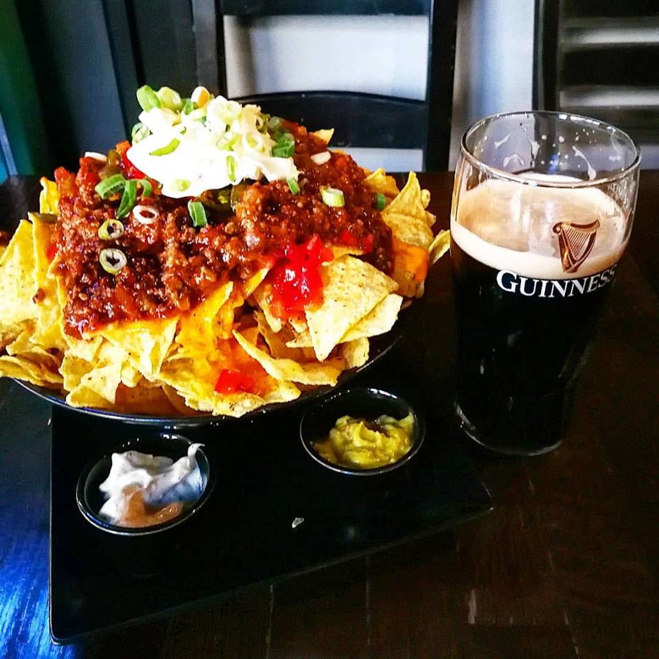 Iar la sfârșitul săptămânii, m-am dat jos de pe stiletto și am lăsat eticheta și furculița la o parte pentru că am poftit la nachos așa că am ajuns la unul din pub-urile mele preferate de ieșeală în Centrul vechi – Kilkenny. E un loc unde merg periodic când vreau ceva friendly, nepretențios și mă simt bine de fiecare dată, iar băieții sunt mereu drăguți mereu și îmi fac și jumătate de porție dacă atâta pot eu să mănânc. Meniul are în special american și irish comfort food, finger, nachos și quesadilla, coaste și plăcinte irlandeze, câteva sortimente de pizza, beri craft și vin la prețuri ok. Atât relaxată am fost că nici poze nu am mai făcut, dar ceva ca-n imaginea de jos mi-a satisfăcut și pofta asta.