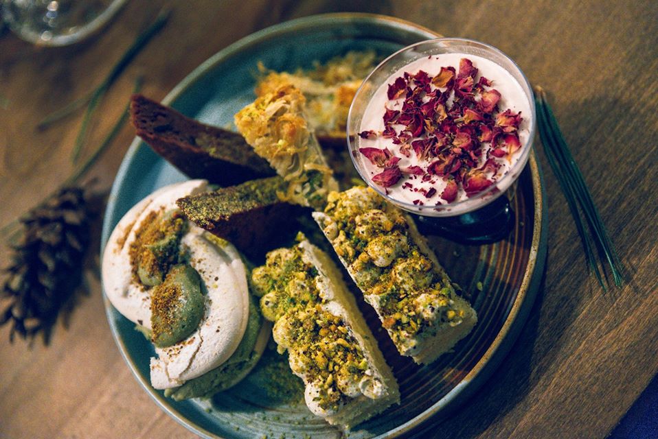 Tot el spune că deserturile sunt cumva reprezentarea ciocnirii dintre două civilizații: estul și vestul se întâlnesc într-un clasic italian precum panna cotta aromată cu apă de trandafiri, mai găsiți și baklava cheese cake, cardamon millefeiulle, o pavlova cu cremă de fistic și o tartă de cicolată cu curmale și umplutura mixta de mamoul. Souk are și o listă de vinuri alcătuită de un somelier și un meniu de cocktail-uri pentru a se alinia cu întreg conceptul de îmbinare a tradiționalului cu așteptări adecvate anului 2020. Nu lipsește shisha menită să completeze ritualic masa oricărui gurmand.