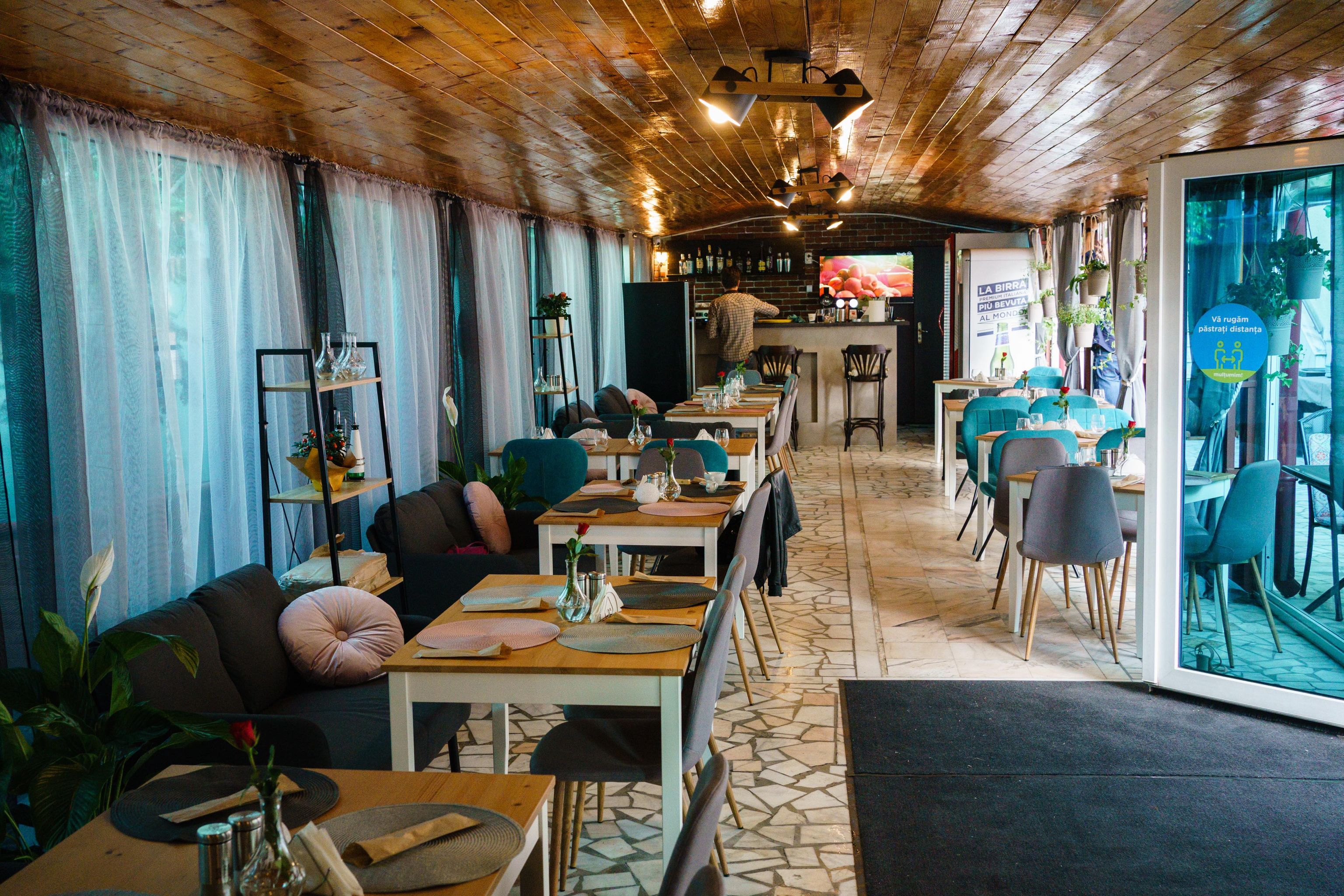 Deci, un loc unde poți petrece liniștit câteva ore când vrei să te retragi la o masă cu familia, cu prietenii, la un prânz cu colegii sau chiar la o cină romantică pentru că este destul de versatil, având pe de o parte și un spațiul mai social – să îi spunem – pe terasă neacoperită, dar și locuri mai retrase pe terasa acoperită.